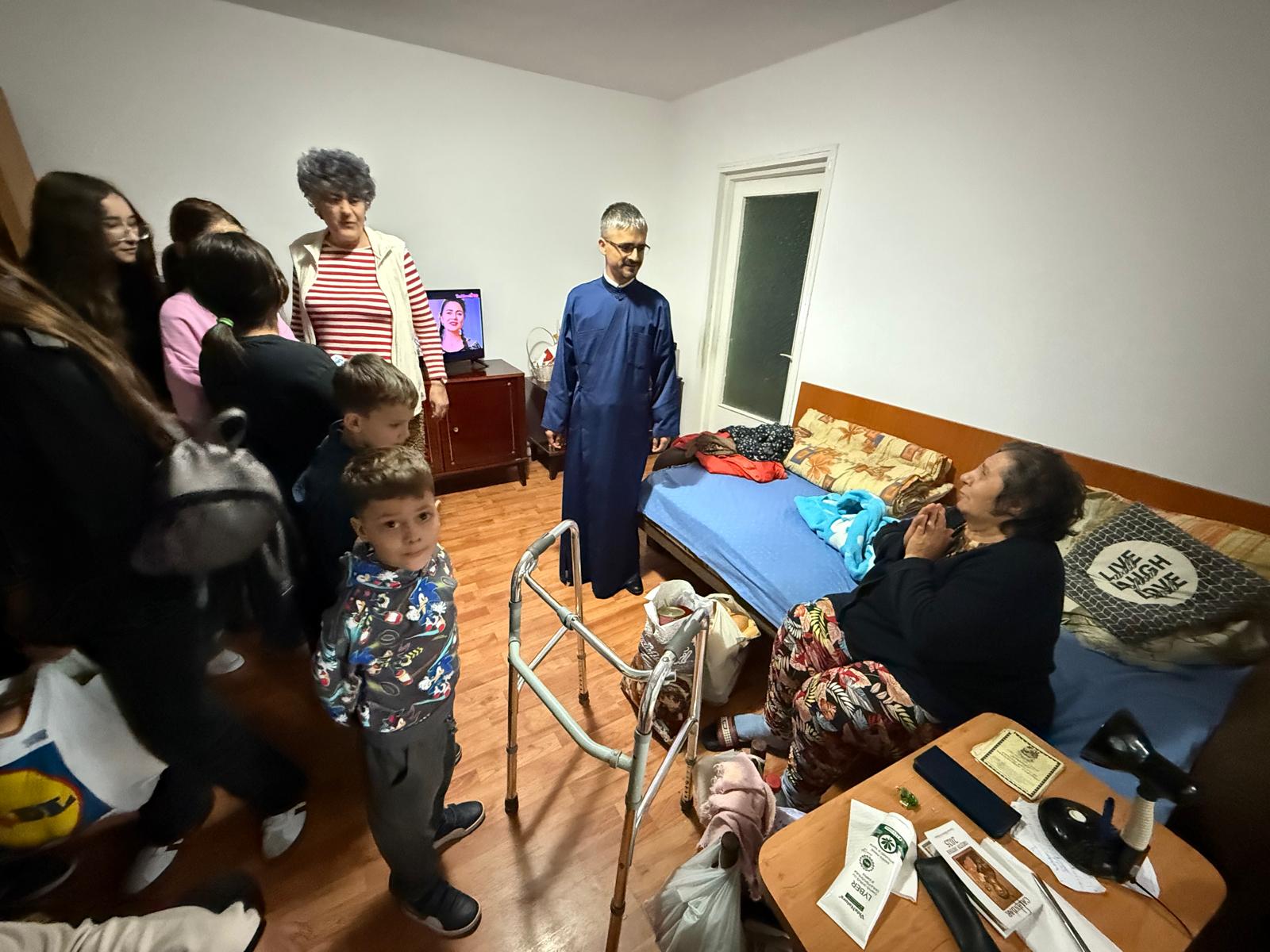 Fiecare dintre noi a adus alimente, iar împreună am pregătit pachete ce au ajuns la bătrâni din comunitate — oameni care ne-au primit cu lacrimi în ochi și recunoștință în suflet.